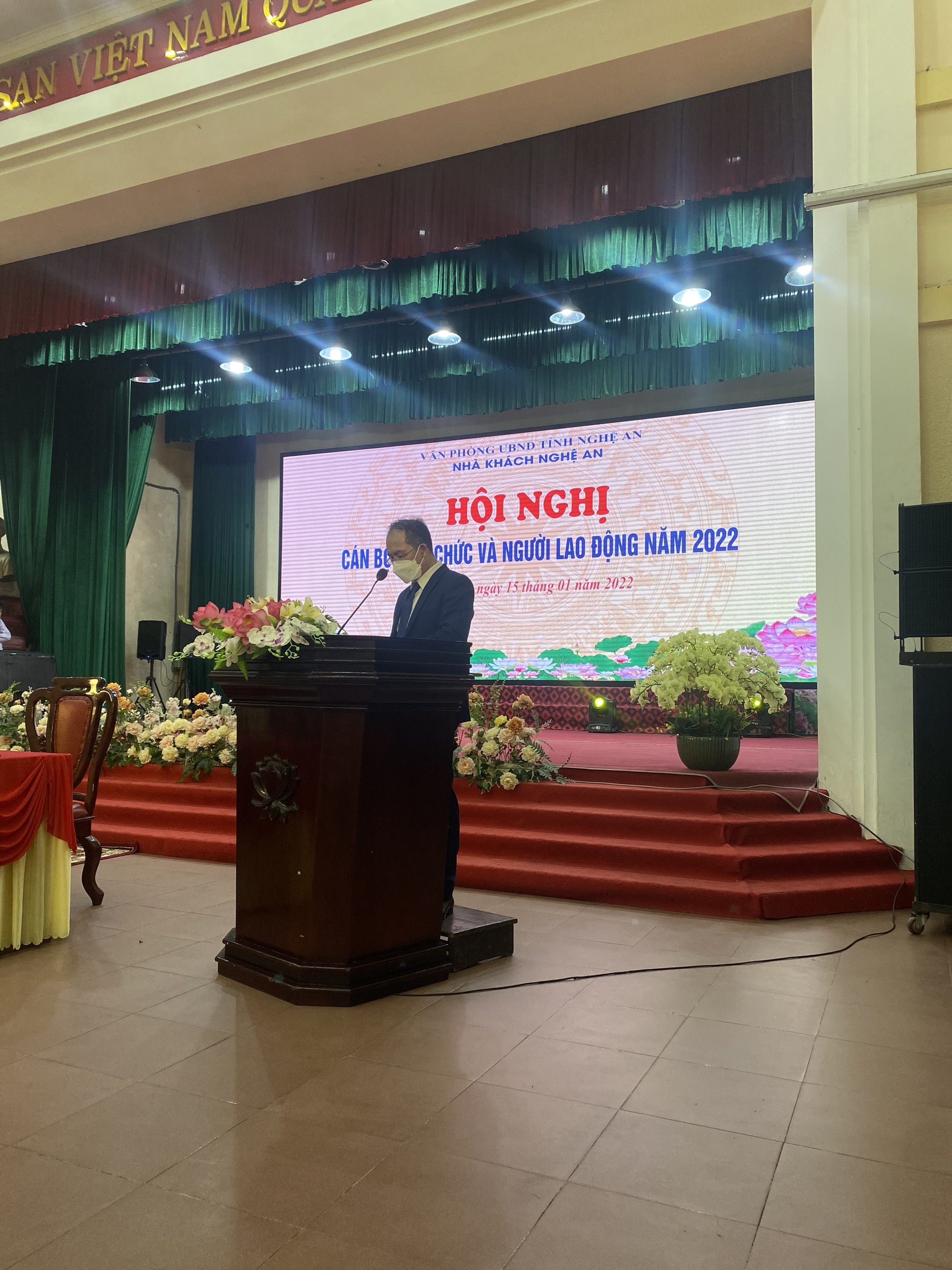Ngày 15/1, tại Hội trường A1, nhà khách Nghệ An đã long trọng tổ chức “Hội nghị cán bộ công chức, viên chức, và người lao động năm 2022”. Đây là hội nghị thường niên nhằm nêu cao tinh thần dân chủ, vai trò, trách nhiệm của mỗi cán bộ, nhân viên trong công cuộc xây dựng và phát triển nhà khách.